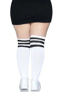 LEG AVENUE White Athletic Women’s Plus Socks With Black Stripes